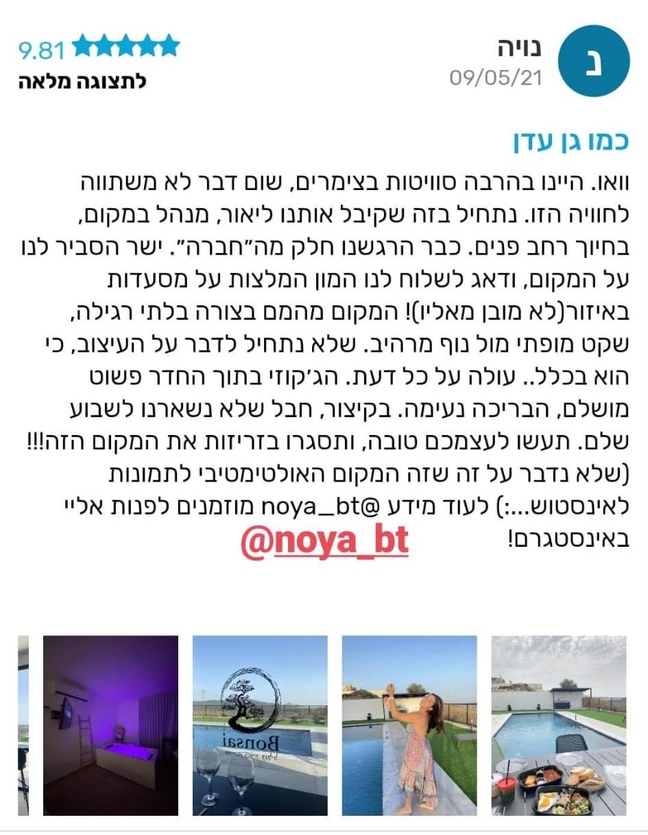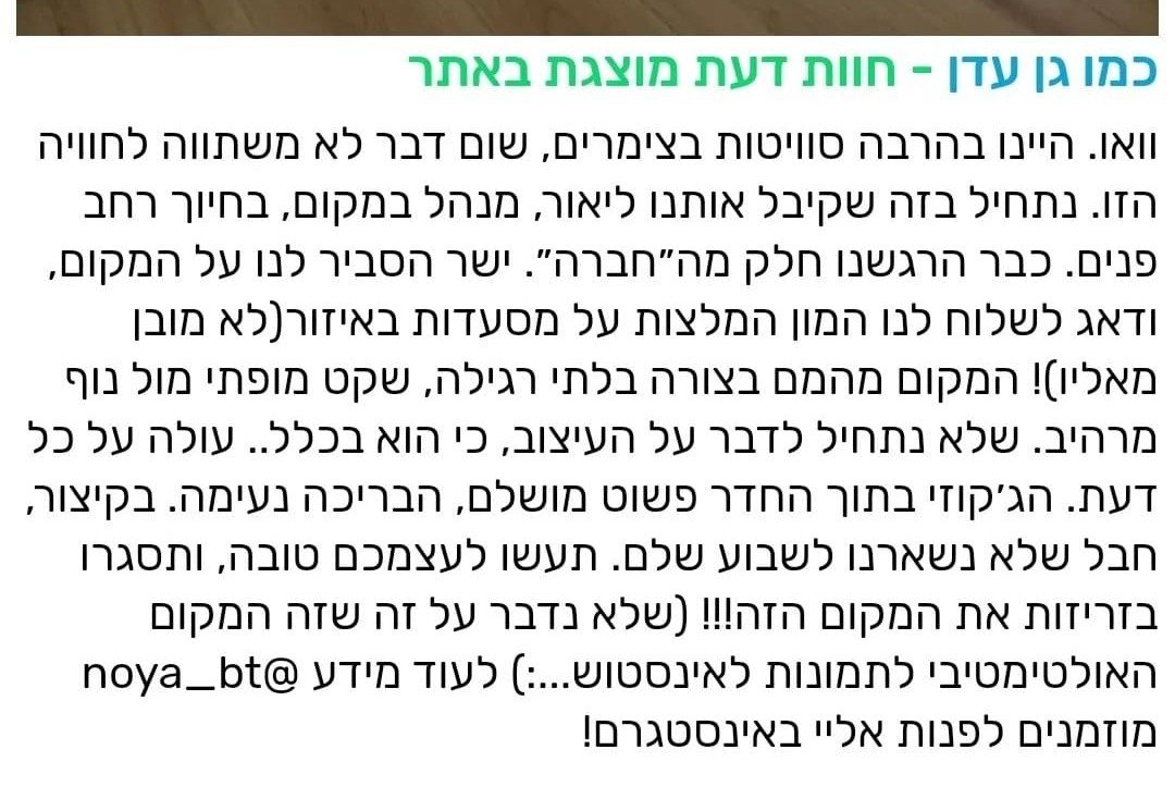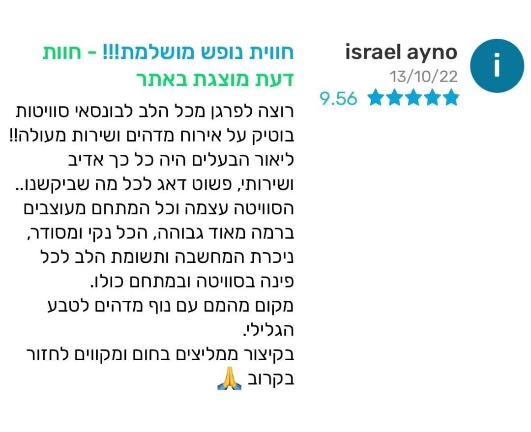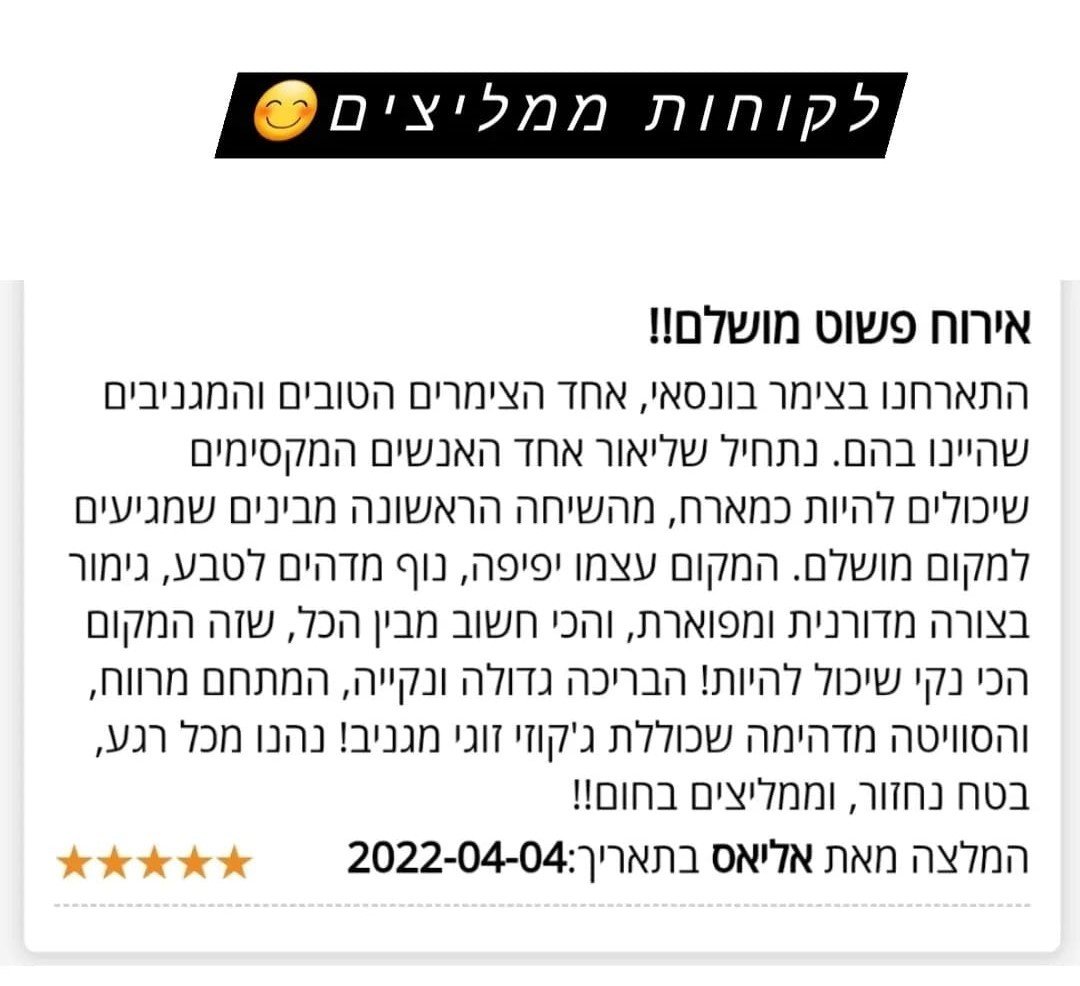 אין עדות טובה יותר מאשר המלצות של האורחים שלנו, שנהנו מהשירות והאווירה הקסומה של הצימרים.