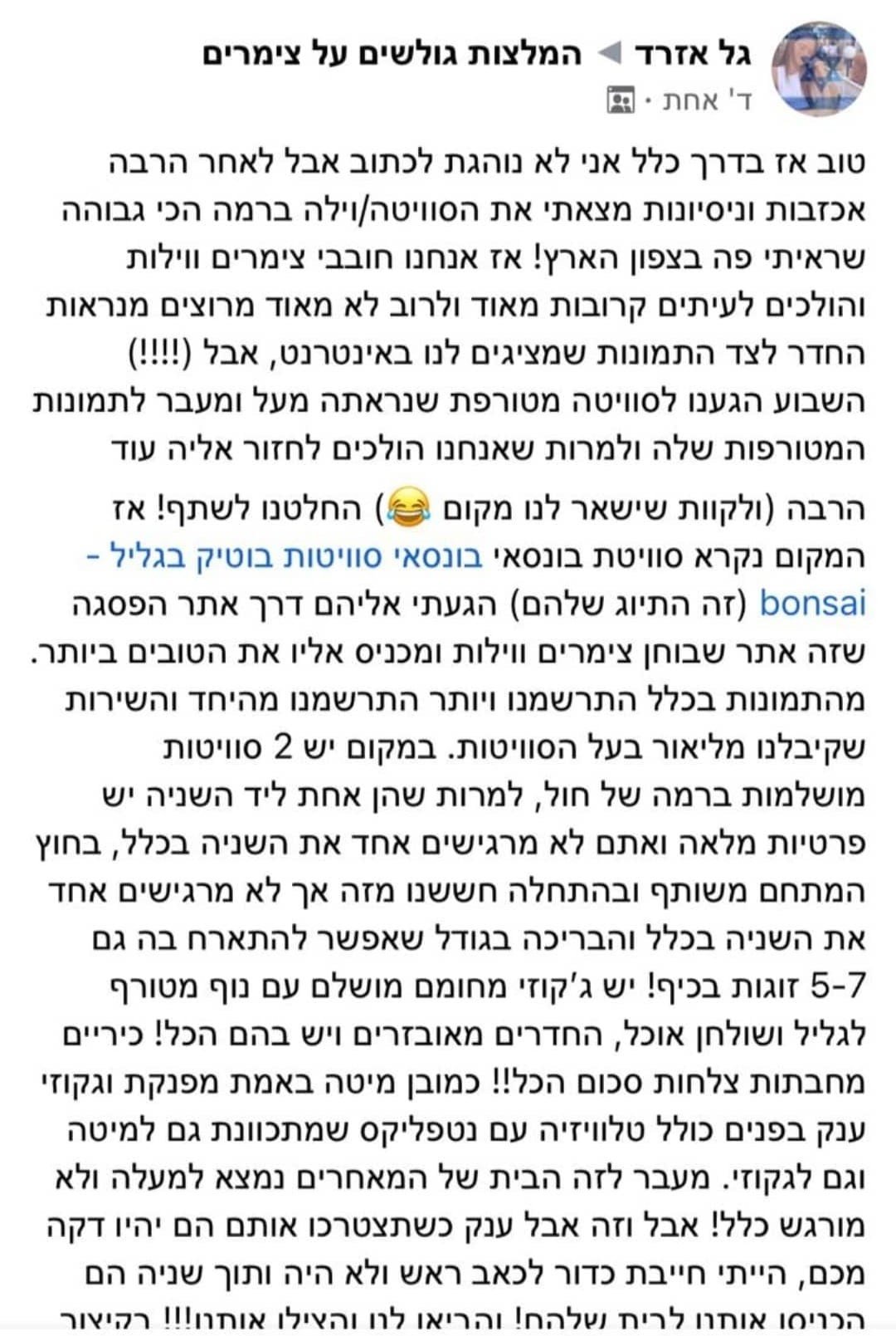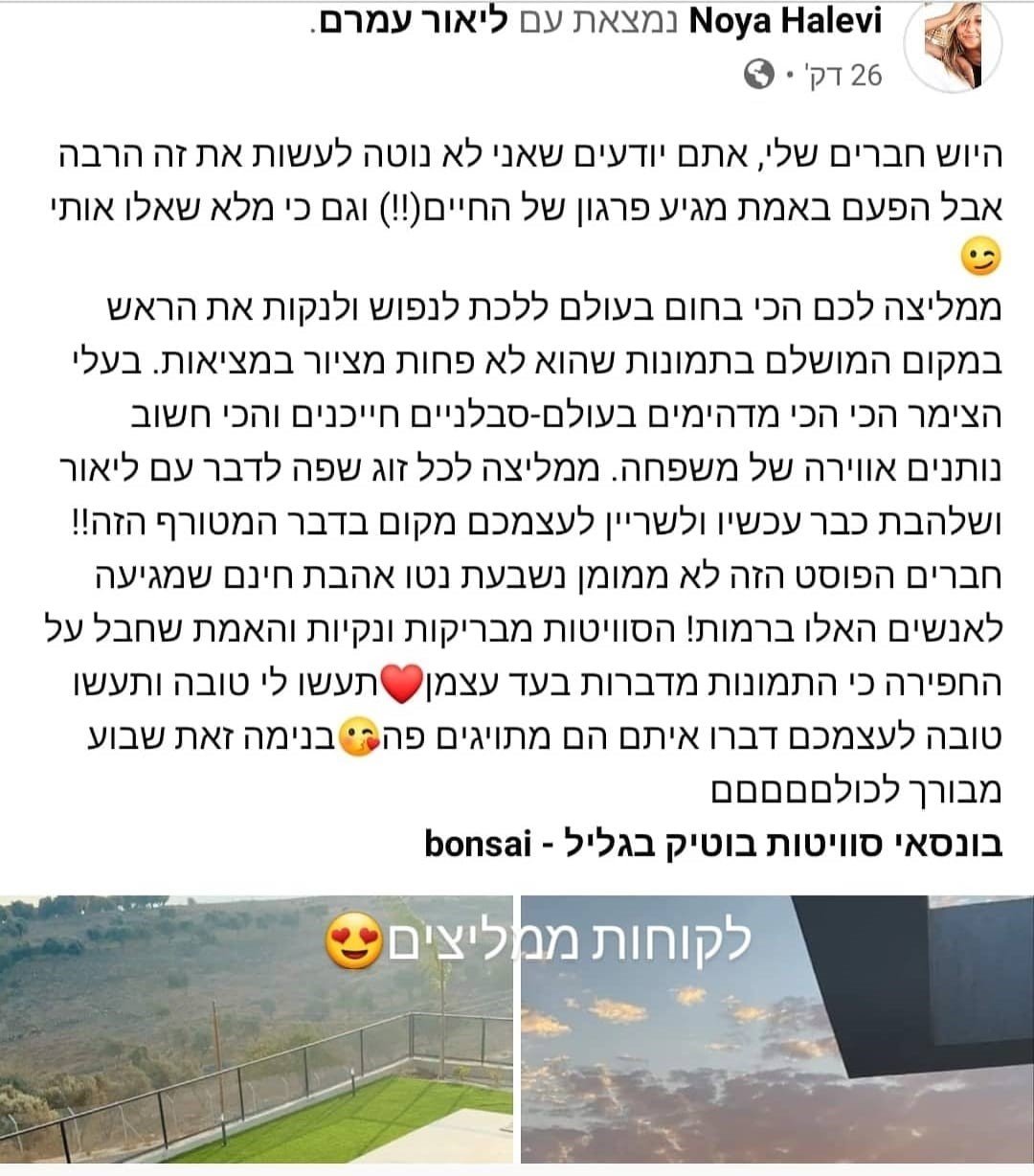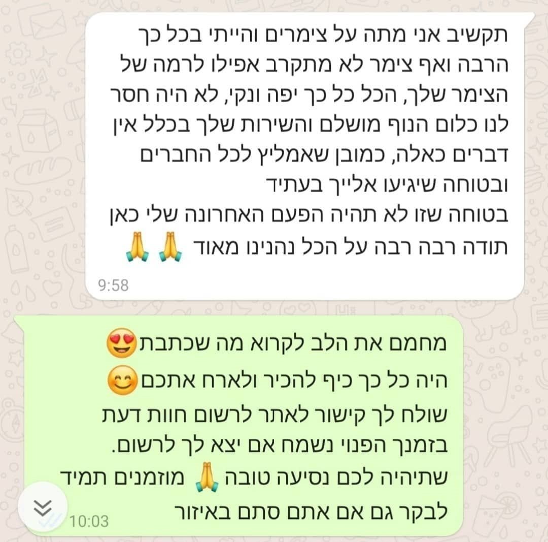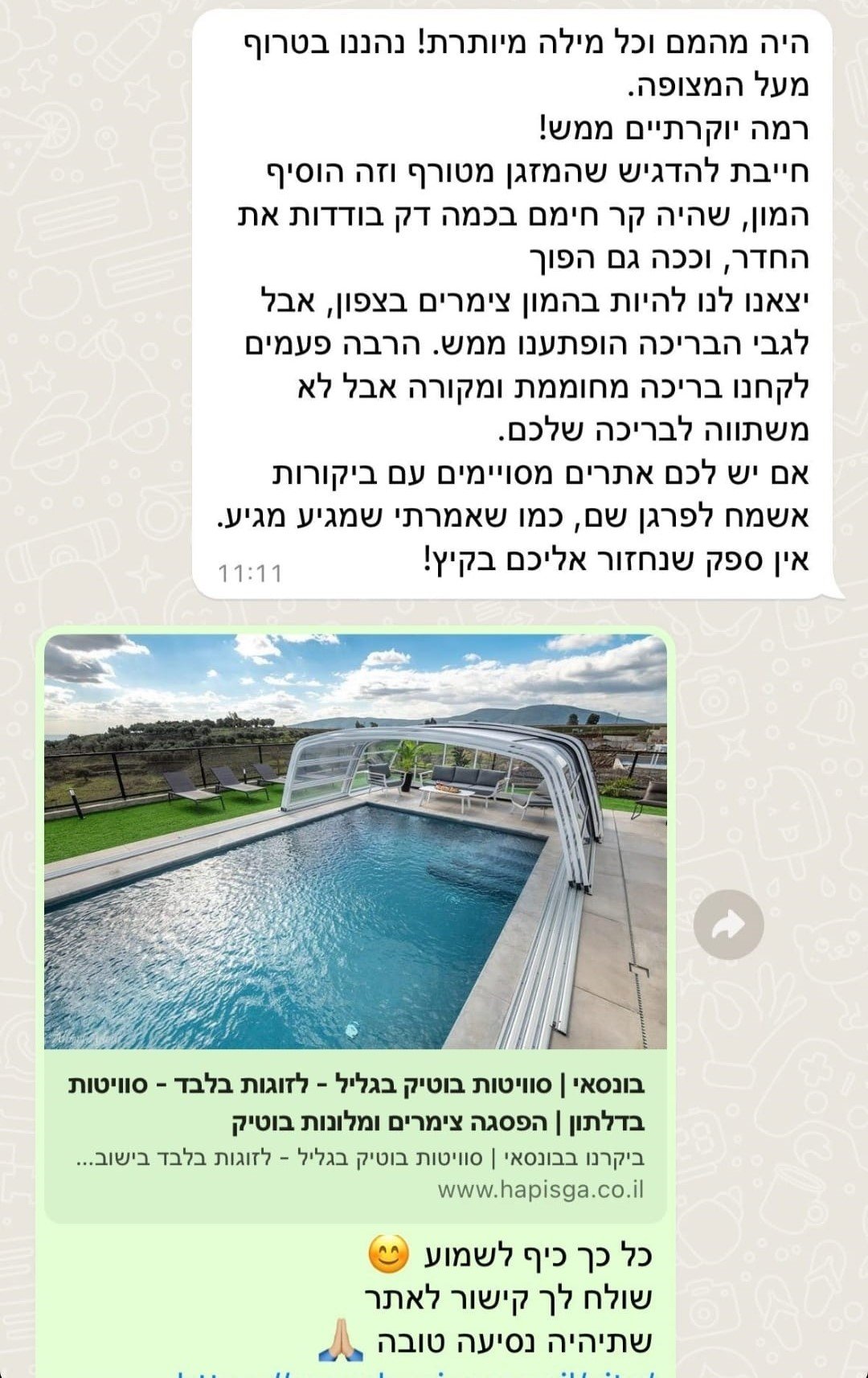 אין עדות טובה יותר מאשר המלצות של האורחים שלנו, שנהנו מהשירות והאווירה הקסומה של הצימרים.