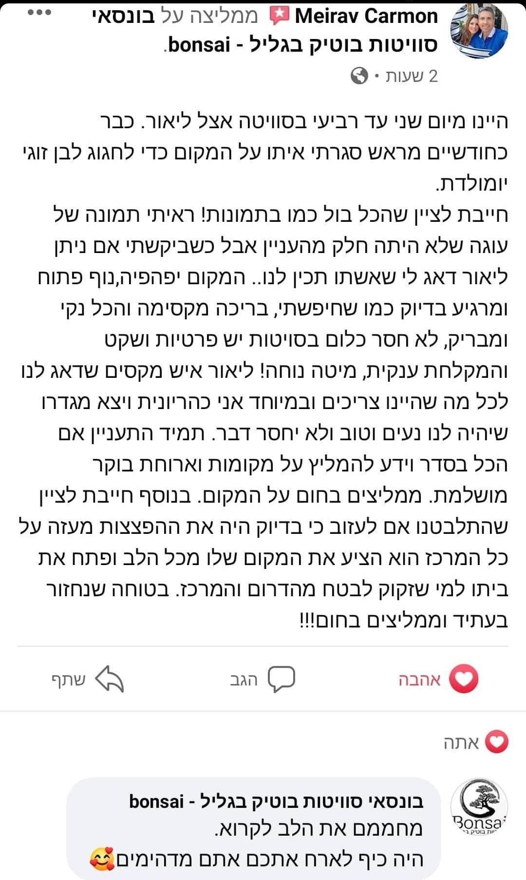 כל הזכויות שמורות לבונסאי סוויטות בוטיק בגליל